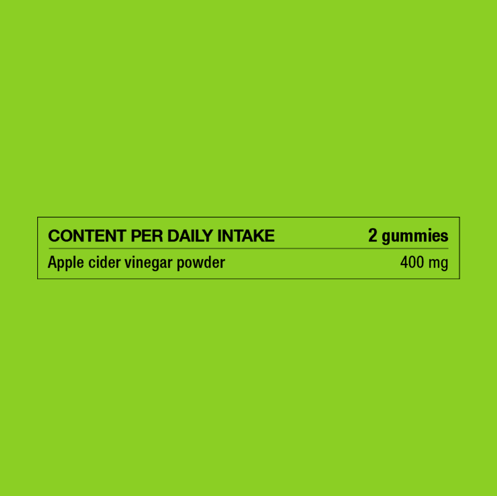 The apple is a truly special ingredient. For over 5,000 years, apple cider vinegar has been valued for its flavour and preservative qualities. In our process, carefully selected apples are cold-pressed into must, then naturally fermented with the “Mother of vinegar”—a beneficial acetic acid bacterium. This traditional method transforms the apples into potent vinegar, which is then gently dried into a fine powder, preserving its benefits for these delicious Apple Cider™ Gummies.