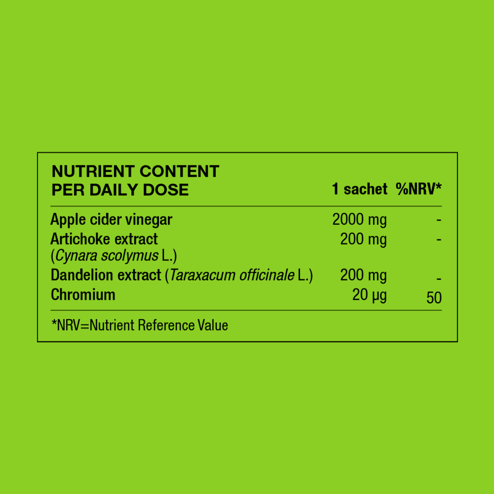 Apple Cider™ Shot is suitable for adults who want a convenient, ready-to-use liquid apple cider vinegar supplement as part of their daily routine. It is ideal for those looking for a tasty sachet format that combines apple cider vinegar with botanical extracts and chromium.