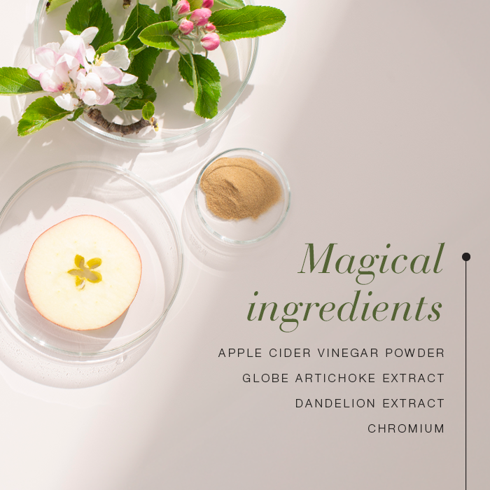 Apple Cider™ Shot contains apple cider vinegar, artichoke extract, dandelion extract and chromium. Artichoke contributes to normal digestion, chromium contributes to the maintenance of normal blood glucose levels and dandelion may help maintain normal body fluid balance. The apple cider vinegar is produced through a traditional process in which selected apples are cold pressed into fresh must, fermented, and then refined to ensure consistent quality and a pleasant apple taste.