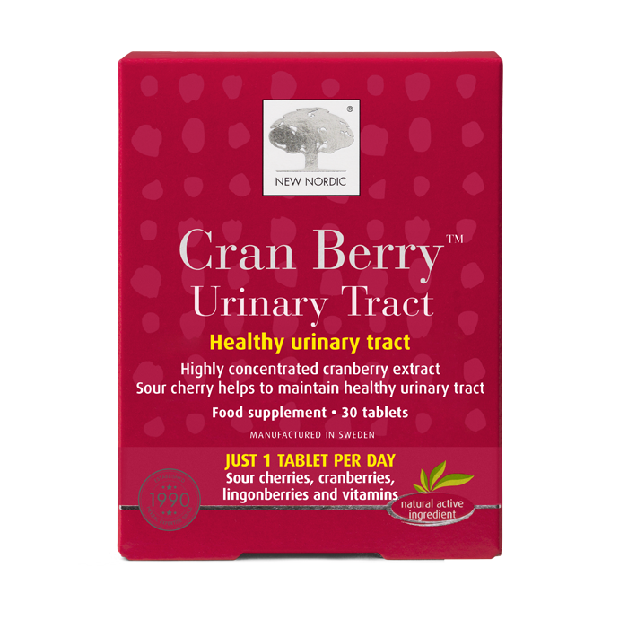 Cran Berry™ Urinary Tract contains sour cherry extract, cranberry extract standardised to pro-antho-cyanidins (PAC), lingonberry extract, vitamin C, vitamin B6 and niacin. The sour cherries used in this formula come from the Prunus cerasus L. species, originally found in Europe and southwest Asia, where they have a long tradition of use. Sour cherries help maintain a healthy urinary tract, while vitamin C and B6 support the normal function of the immune system and niacin contributes to normal mucous membranes.