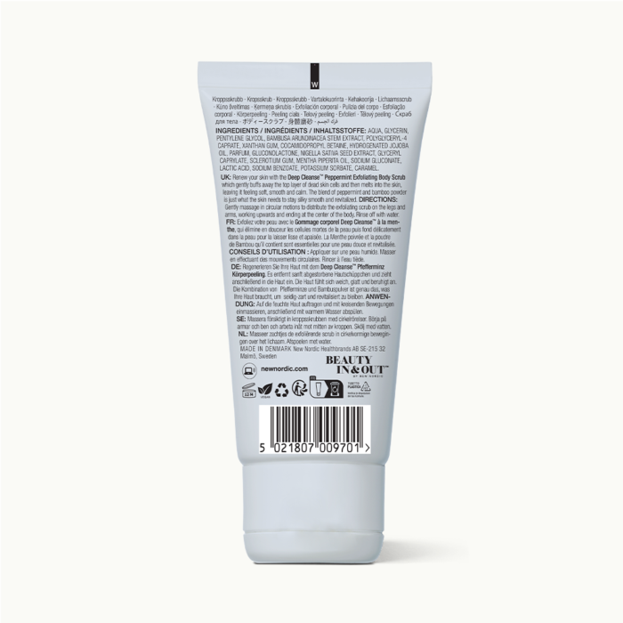 Deep Cleanse™ Peppermint Exfoliating Body Scrub gently removes dead skin cells to reveal softer, smoother and more refreshed-looking skin. The creamy scrub buffs the surface of the skin before melting into a silky finish, leaving it calm and comfortable. A revitalising blend of peppermint and fine bamboo powder helps keep the skin smooth, polished and renewed.