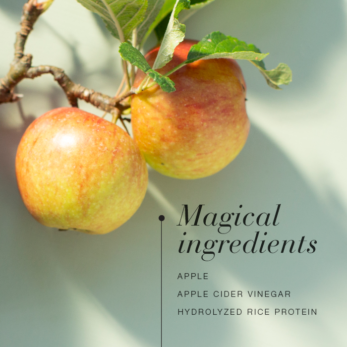 The formula features apple, millet and hydrolysed rice protein to help increase volume and improve manageability. Coconut oil naturally moisturises and smooths the hair, while vinegar and apple fruit extract help boost shine, fortify hair fibres and support the scalp. Together, these ingredients leave the hair soft, glossy and revitalised.