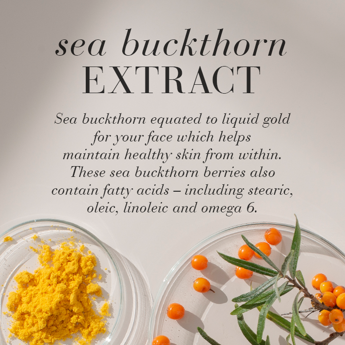 The formula includes fine molecular hyaluronic acid in multiple forms to deeply moisturise and maintain the skin’s moisture balance, shea butter to nourish and soften, and sea buckthorn extract rich in natural antioxidants and vitamin C. Together, these ingredients help hydrate, smooth and visibly improve the skin’s elasticity and overall appearance.
