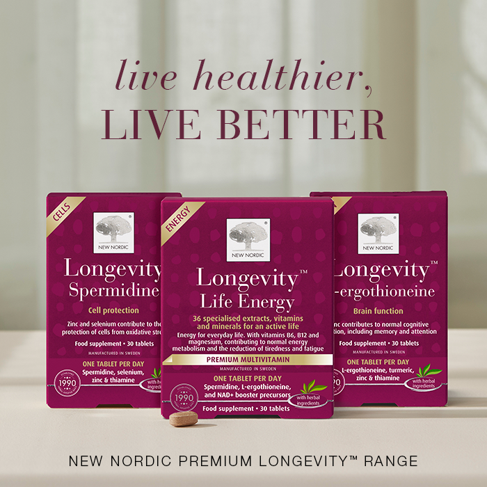 Boost lifelong wellness and support healthy ageing with Longevity™, a premium range of daily supplements. Designed to enhance energy, cognitive function, cellular protection, and strength, each formula blends Scandinavian herbal expertise with research-backed ingredients like NAD+ boosters, creatine, and key botanicals, working in harmony with your body. One range, multiple solutions—your daily step towards longer, healthier, more energised living.